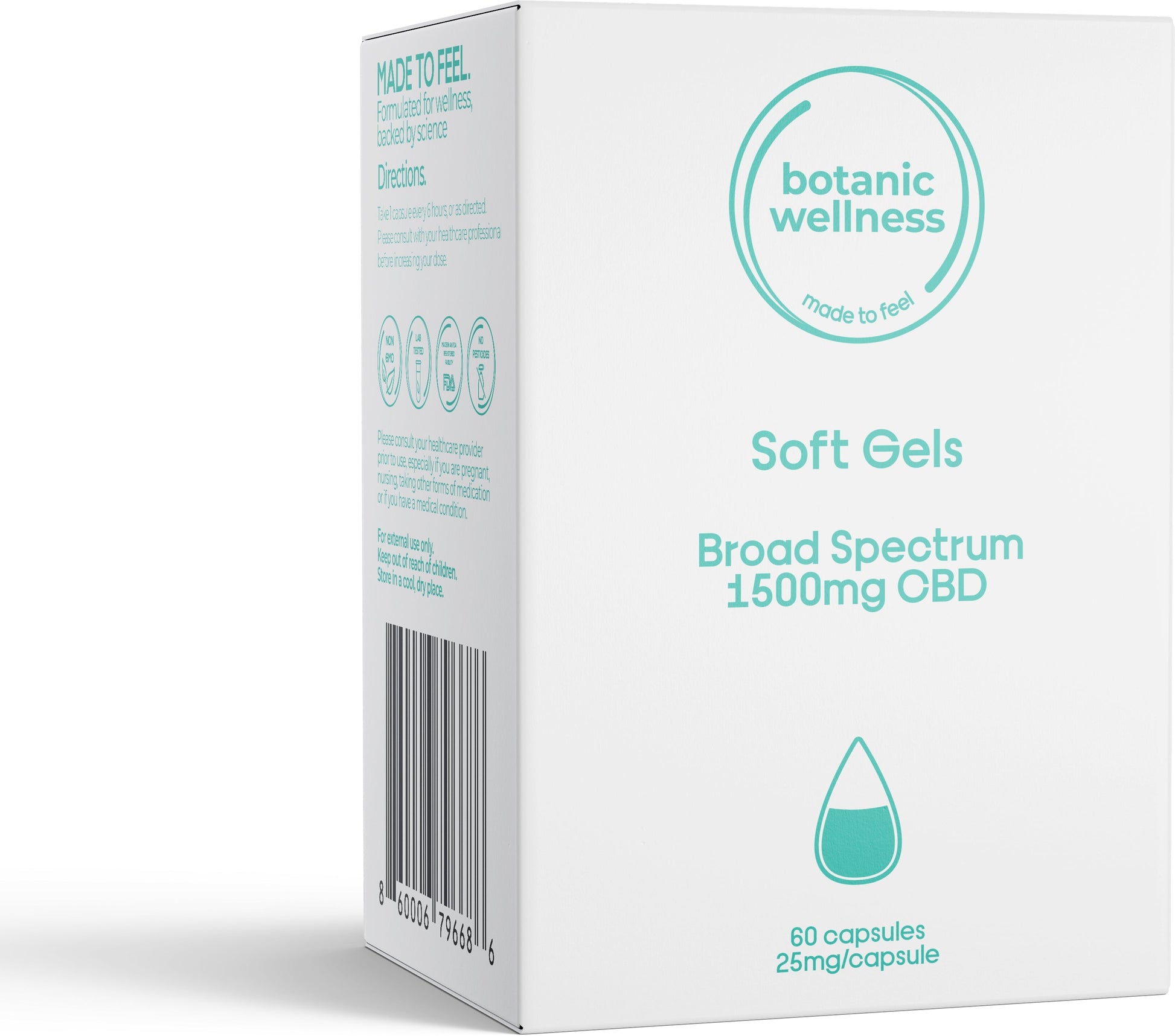 Ingredients: Broad spectrum CBD* (25mg per serving), MCT oil, gelatin, glycerin, purified water