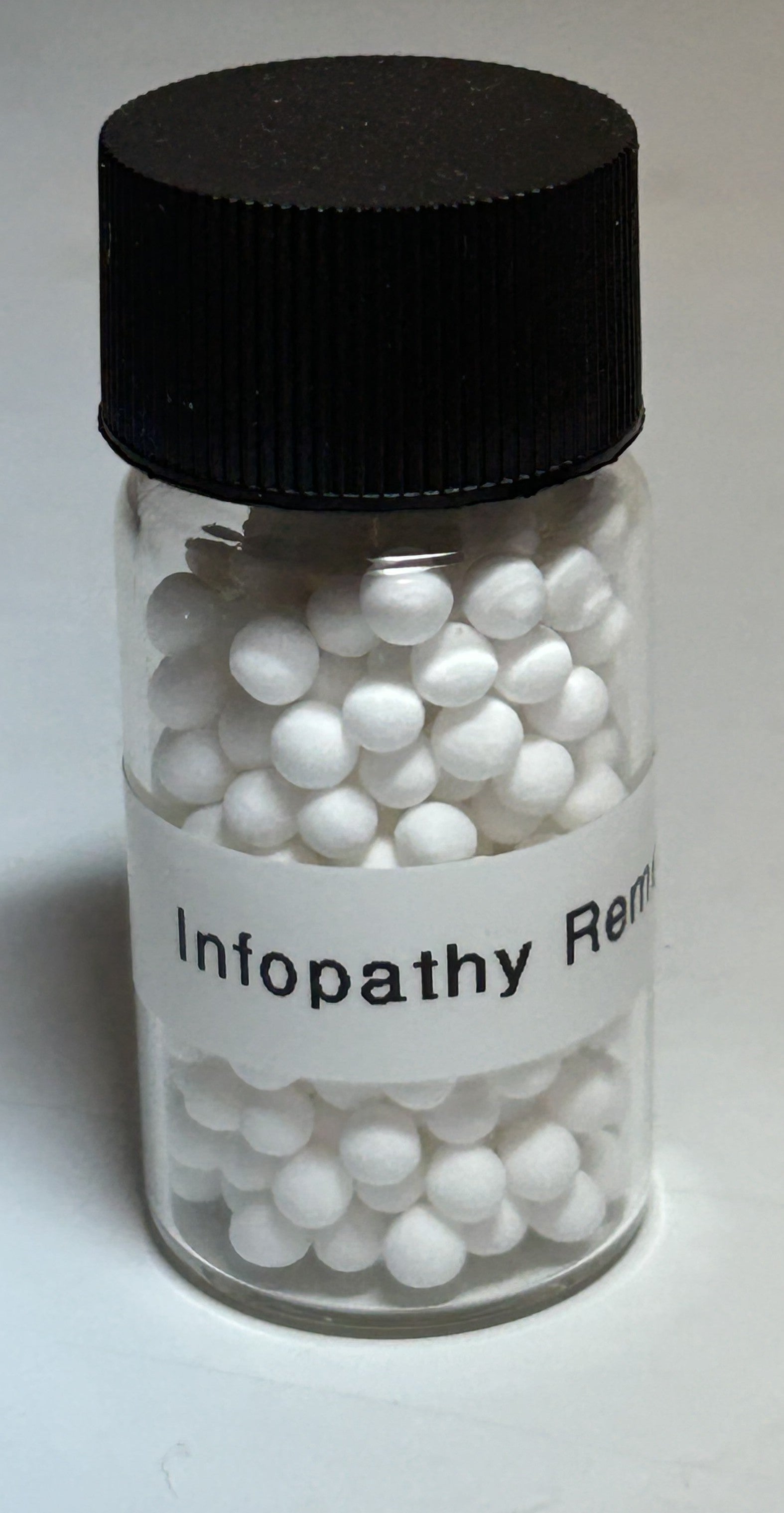 Custom remedy made using the Infopathy system: 100% organic sugar pellets imprinted with specific Infopathy remedies.