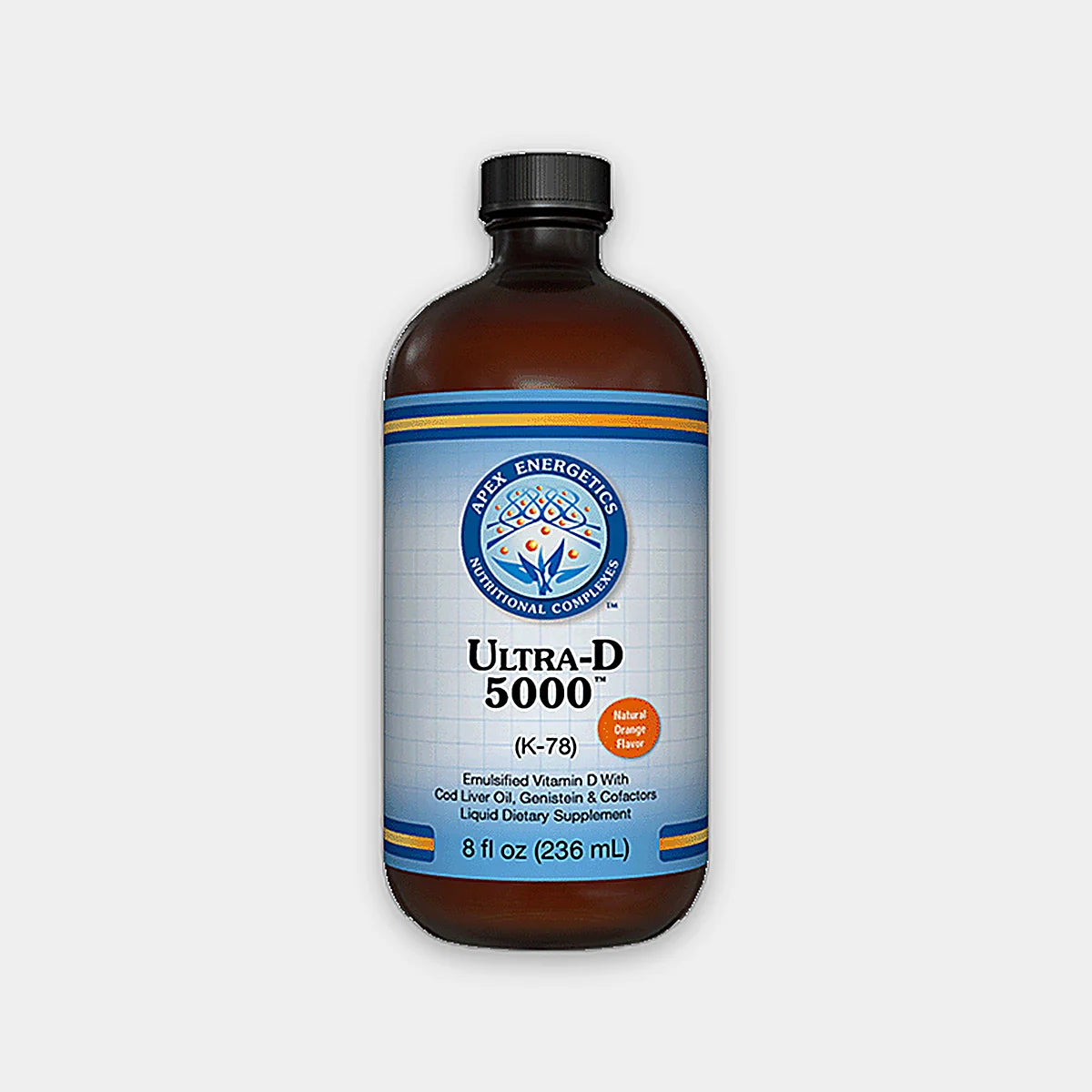 Ultra-D 5000 offers (5000 IU) 125 mcg per serving of a highly absorbable and natural source of vitamin D3 (cholecalciferol) with its key cofactors in a base of cod liver oil. The formula was designed to support the metabolism of vitamin D and to deliver a powerful mix of nutrients including magnesium, biotin, pantethine, calcium, and boron. In addition, this product is ideal for a more aggressive vitamin D supplementation. Also available, Ultra-D Complex™ (K35) with (2000 IU) 50 mcg per serving.